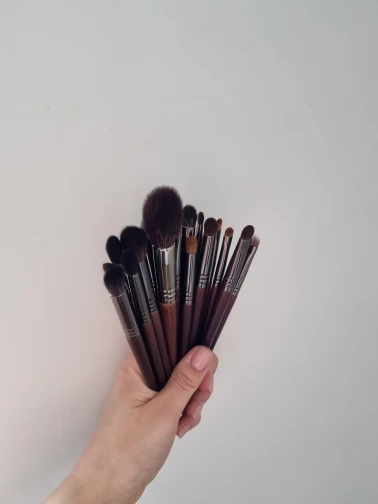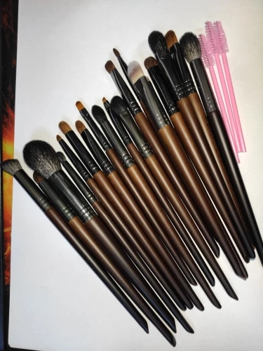 19 Остроконечная кисть для точного нанесения теней 1см/17см20 Малая кисть для теней, 0,9 см/16,9 см21 Кисть для губ, 0,7 см/16,6 см22 Кисть для бровей, 0,7 см/16,6 см23 Кисть для век, 0,6 см/16,6 см24 Тонкая кисть, 0,5 см/ 16,6 см