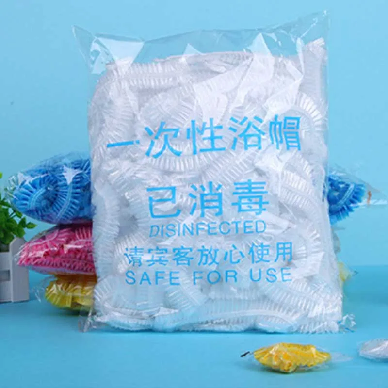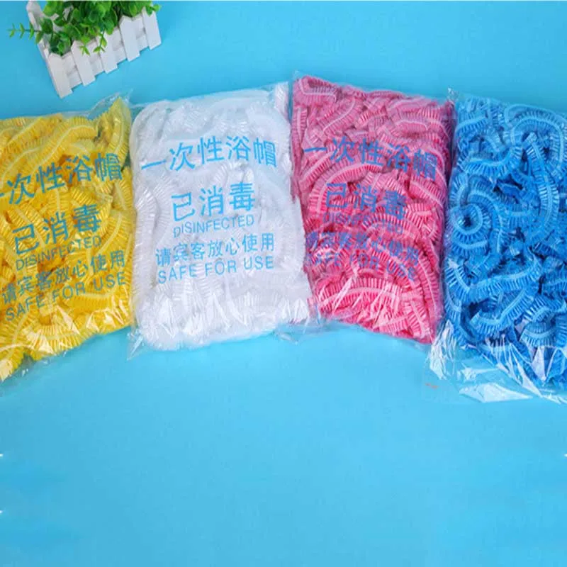 Bath Caps 100 шт Одноразовая крышка для душа пластиковая Водонепроницаемая прозрачная цветная шапочка для душа отель для путешествий дома одноразовые Товары для ванной комнаты