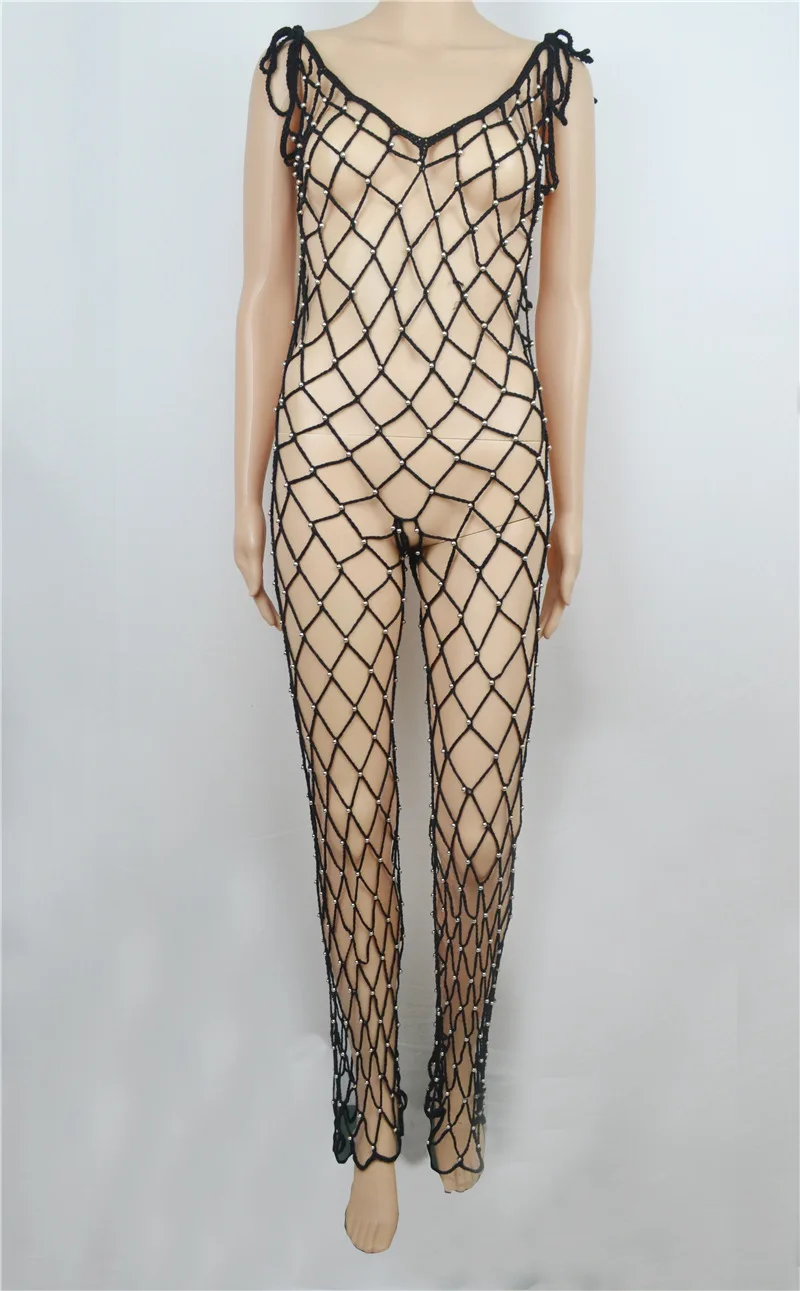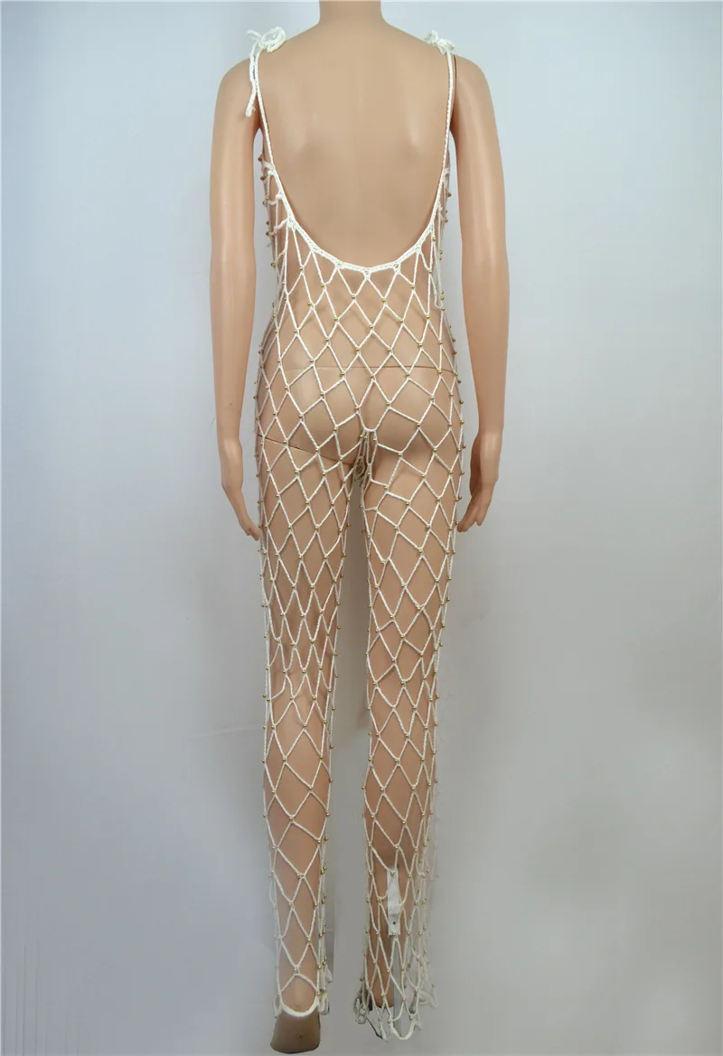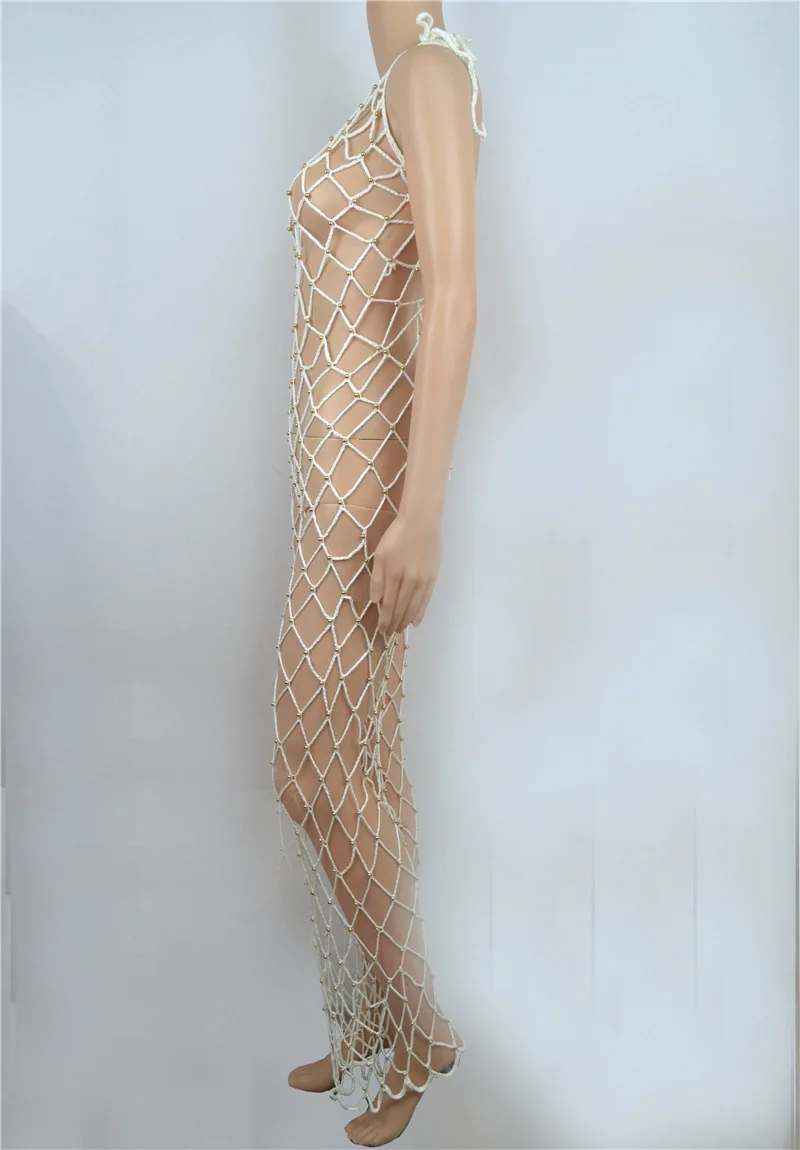 Vikionfly Сексуальная Пляжная накидка с жемчугом, Женская 2021 летняя сетчатая туника, вязаный купальник бикини, одежда для плавания, Пляжное Платье, пляжная одежда
