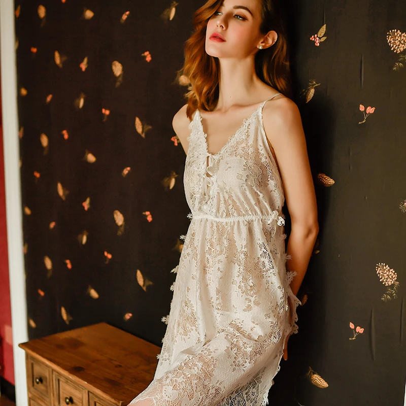 Летняя Новинка, элегантная женская кружевная ночная рубашка на брет...