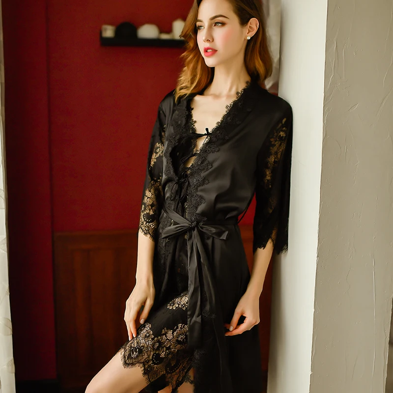 Халат: длина: 81 см, рукав: 48 см, Длина пояса: 180 см Платье: 88 см, обхват талии: 62-100 см, обхват талии: 54-74 см, длина паха: 23 см