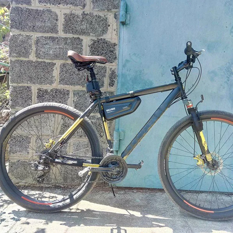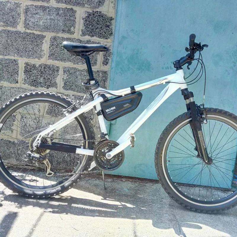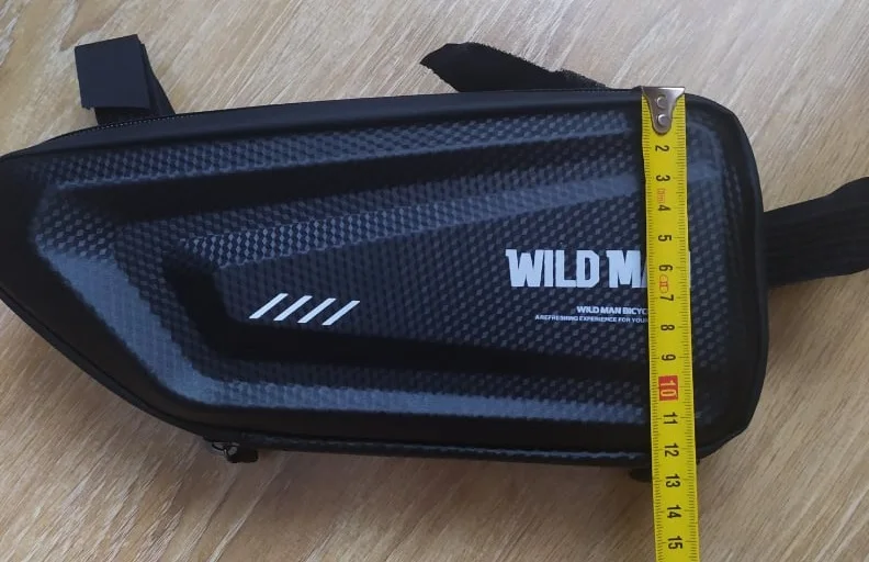 Товар пришёл через 12 дней, что для такого периода очень быстро(заказывал на 11.11). Даже подарочный пакетик от Ali дали! Упаковка хорошая, товар целый. Описанию соответствует. Материалы хорошие, сумка держит форму. Сшита/склеена качественно, на молнии резинка для защиты от воды. Внутри сделаны пара кармашков для разделения пространства - плюс к удобству! На раме держится отлично, влагостойкая. Размер позволяет положить внутрь набор инструментов, камеру, заплатки, компактный насос. Из минусов - тугая молния, но оно же и плюс - на ходу не расстегнётся. А также небольшая ассиметрия со стороны кармана, слева сумка торчит сильнее. Удобно для использования на стоянке, снимаю полностью сумку с рамы, открываю и досатаю всё нужное. Отличный товар. Продавца и товар рекомендую!