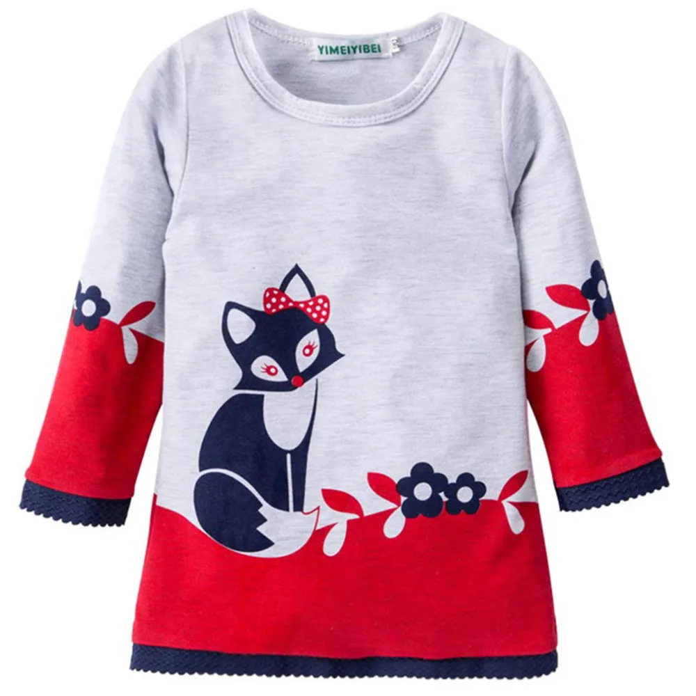 Детское зимнее теплое платье, модное ТРАПЕЦИЕВИДНОЕ платье-свитер с лисьим рисунком, вязаная детская одежда с длинным рукавом и круглым вырезом, одежда для вечерние, платье 2-6