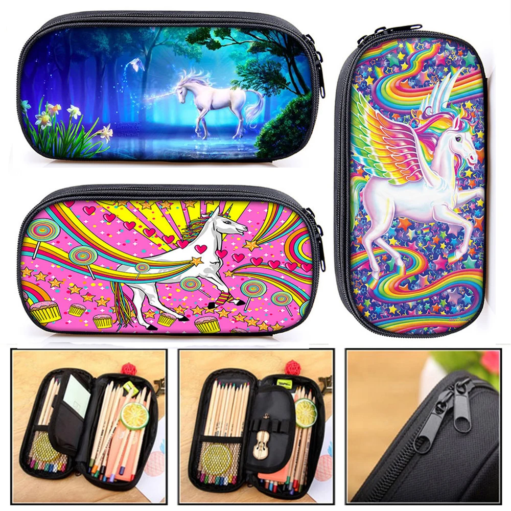 Разноцветный чехол для косметики с изображением единорога, пенал для девочек, стационарная сумка, школьный чехол, женские сумки для макияжа, студенческий держатель для карандашей