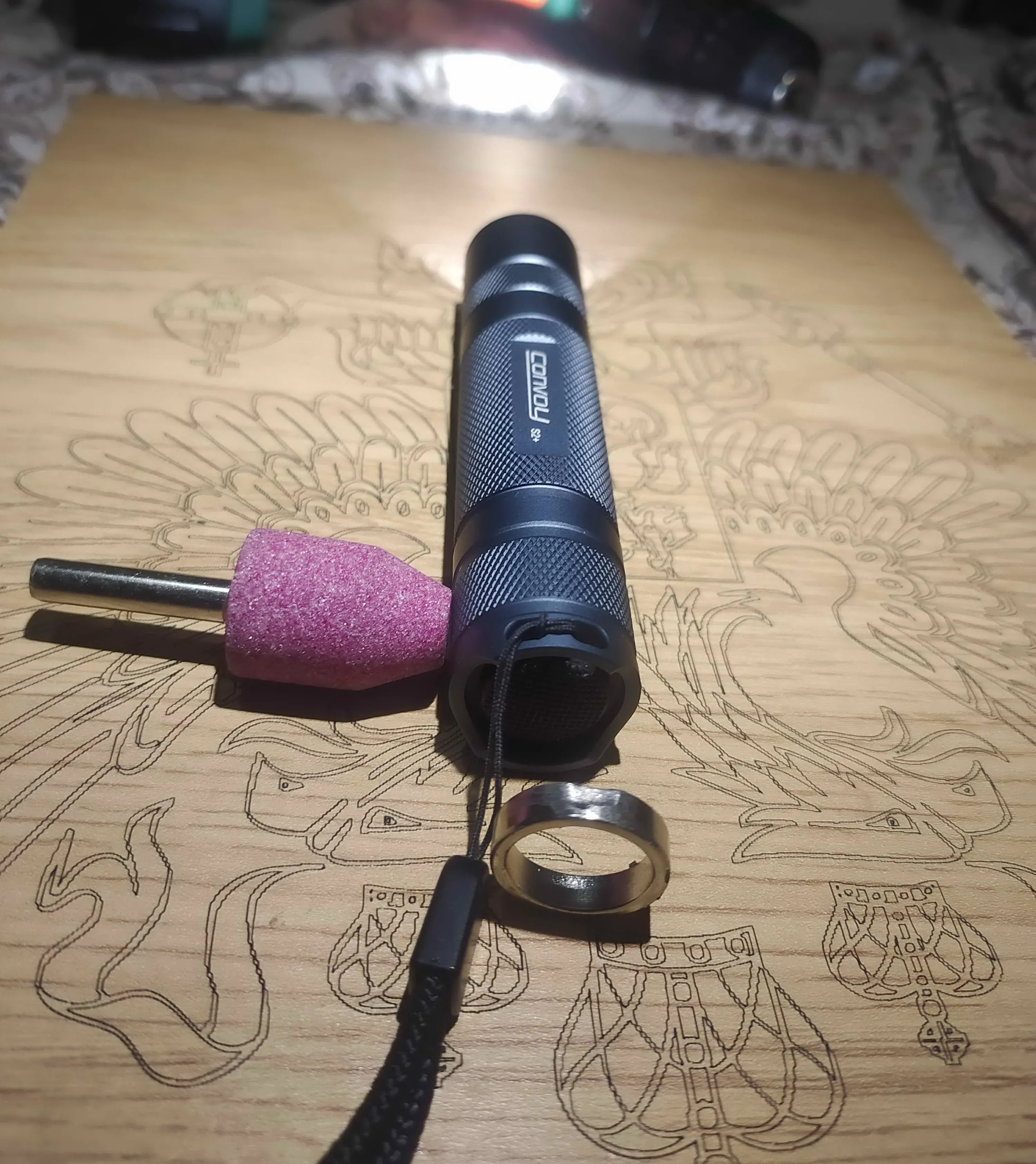 Фонарик, как всегда, отличный. Если вам не нужно светить в даль в точку - попросите установить Вам отражатель (orange peel) апельсиновая корка. Вблизи и для ночных поездок на велосипеде по лесу так гораздо удобней (я сравнивал и на предыдущий конвой даже дополнительно отражатель докупал). Максимального тока 1.05...1.4 А для поездок по лесу вполне достаточно. Попросил в подарок магнитное кольцо (положили). Что бы кольцо встало вместе со шнурком - пришлось делать в нем выемку (кольцо прочное). Кольцо хорошо держит фонарик в любом положении. Разработчики, небоскреб вам в ипотеку! Сделайте уже наконец эту выемку в кольце!!!