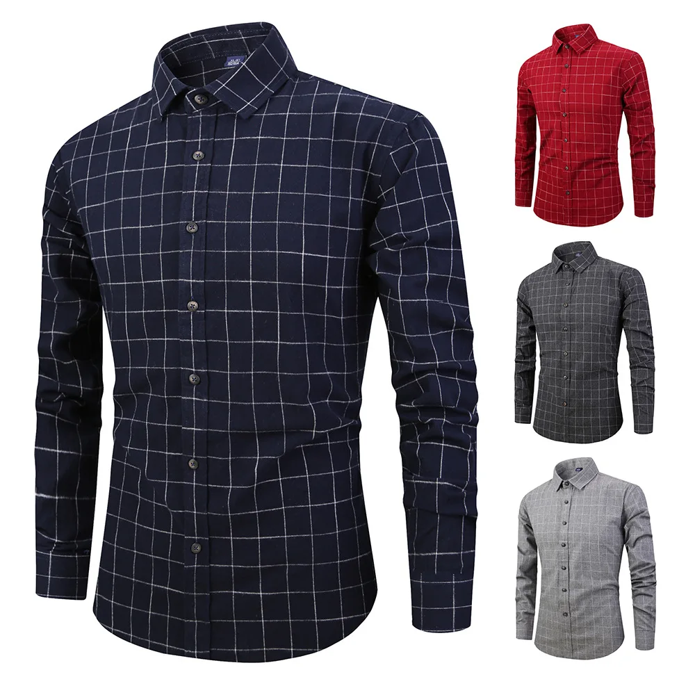 2020 Vomint мужская клетчатая рубашка с длинным рукавом, брендовая мужская клетчатая рубашка, хлопковая Мужская Повседневная рубашка, большой размер, тонкая