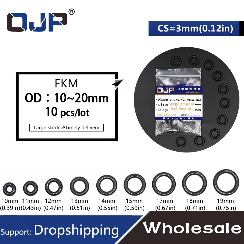 10 шт.лот фторрезиновое кольцо FKM уплотнительное кольцо cs3.55 мм ...