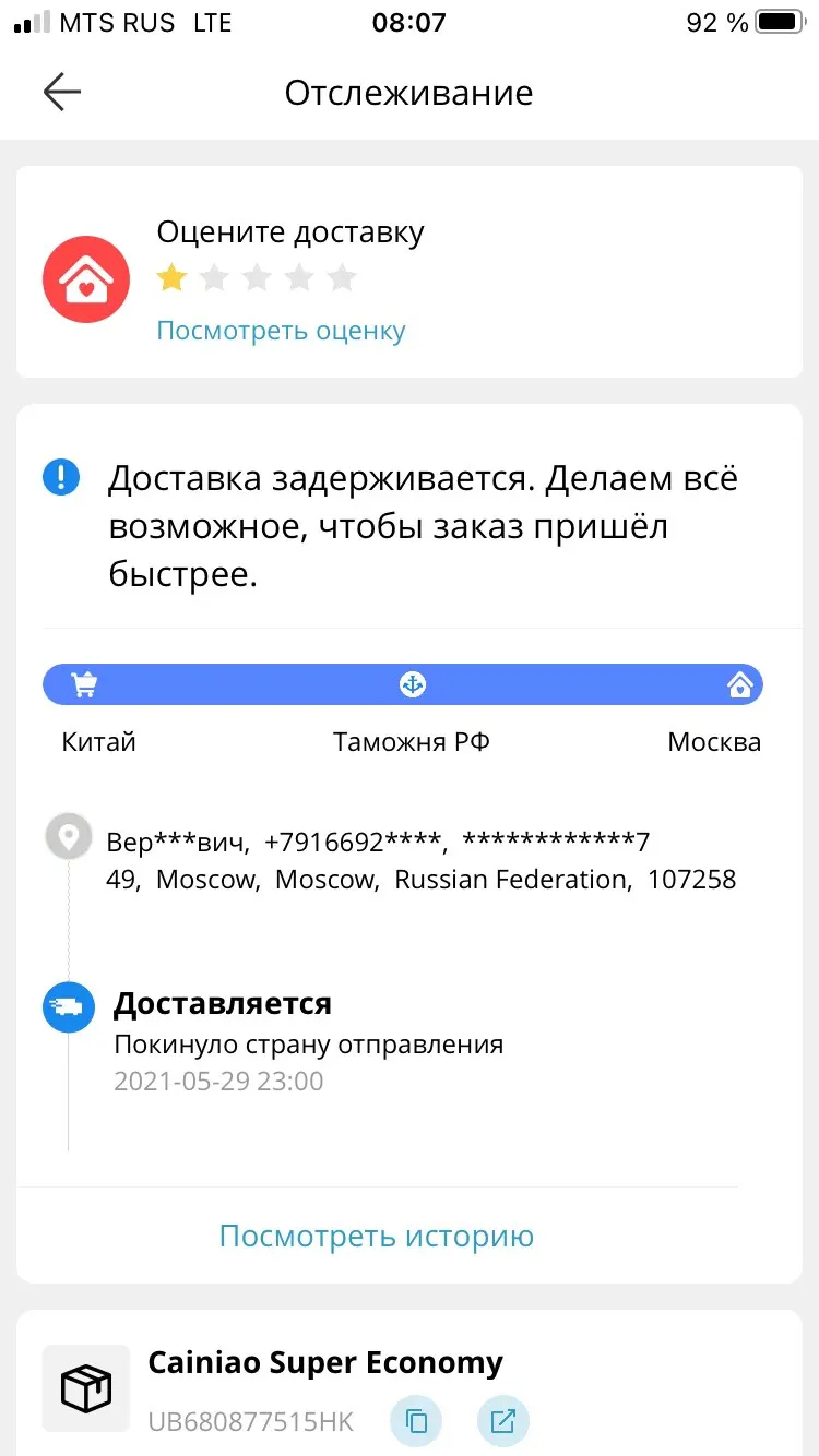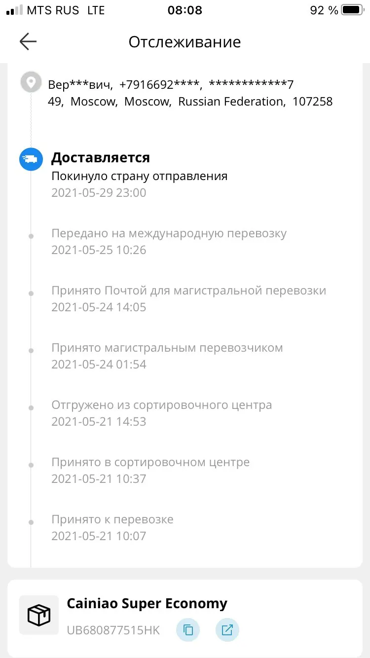 Страна: US Color: 4 Ships From: China Доставка: Cainiao Super Economy 11.05.2021
