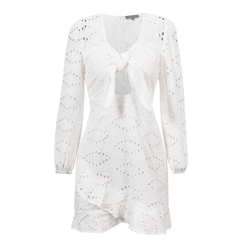 Женское винтажное короткое платье с вышивкой, повседневное праздничное белое платье с v-образным вырезом и шнуровкой, 2019
