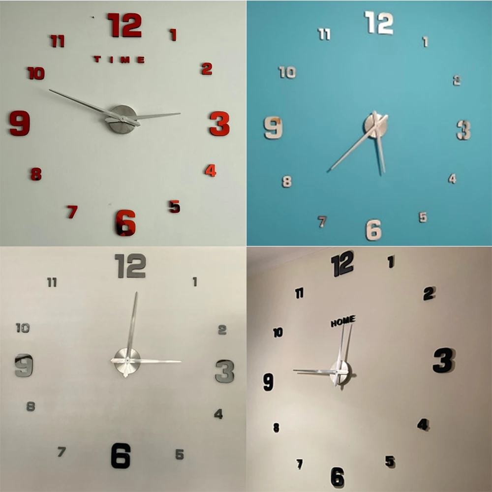 Большие цифровые настенные часы, большие 3D часы, акриловые зеркальные настенные наклейки, большие кухонные Подвесные часы, современный дизайн, домашние буквы