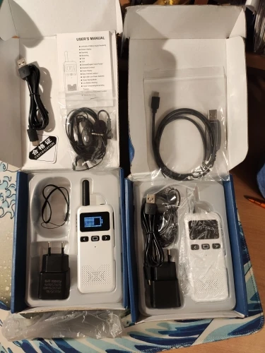Хорошие рации. Задержки нет после нажатия кнопки. Зарядка USB С. Гарнитура говенная, ее сразу можно выкинуть. Сами рации клево выглядят и очень громкие.