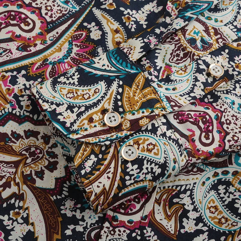 Мужская Повседневная рубашка Dioufond, с цветочным принтом пейсли, с длинным рукавом, на пуговицах, с принтом розы