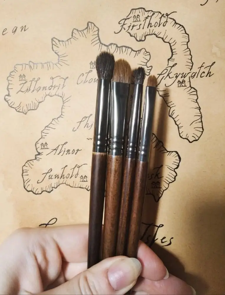 Прислали не тот набор. Заказывала из за одной кисточки именно этот набор, так она другая пришла, печалька. Сами кистюшки за свою цену неплохие, волос в сборе стриженный. И если там и есть коза, то она все равно комбинирована с синтетическим ворсом. Ручки достаточно короткие по сравнению с проф марками. В работе пока не пробовала