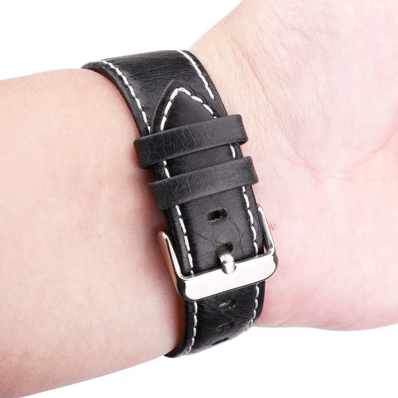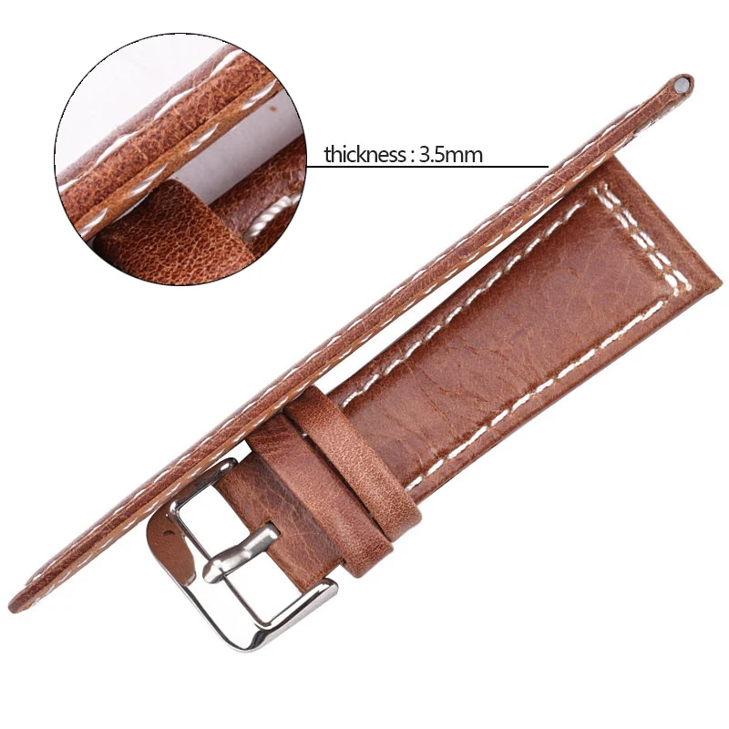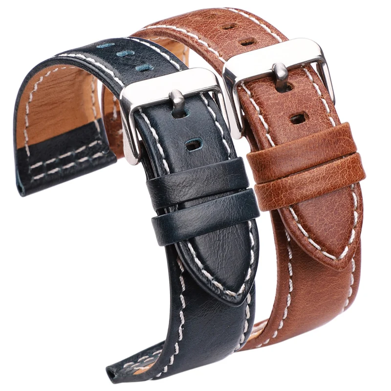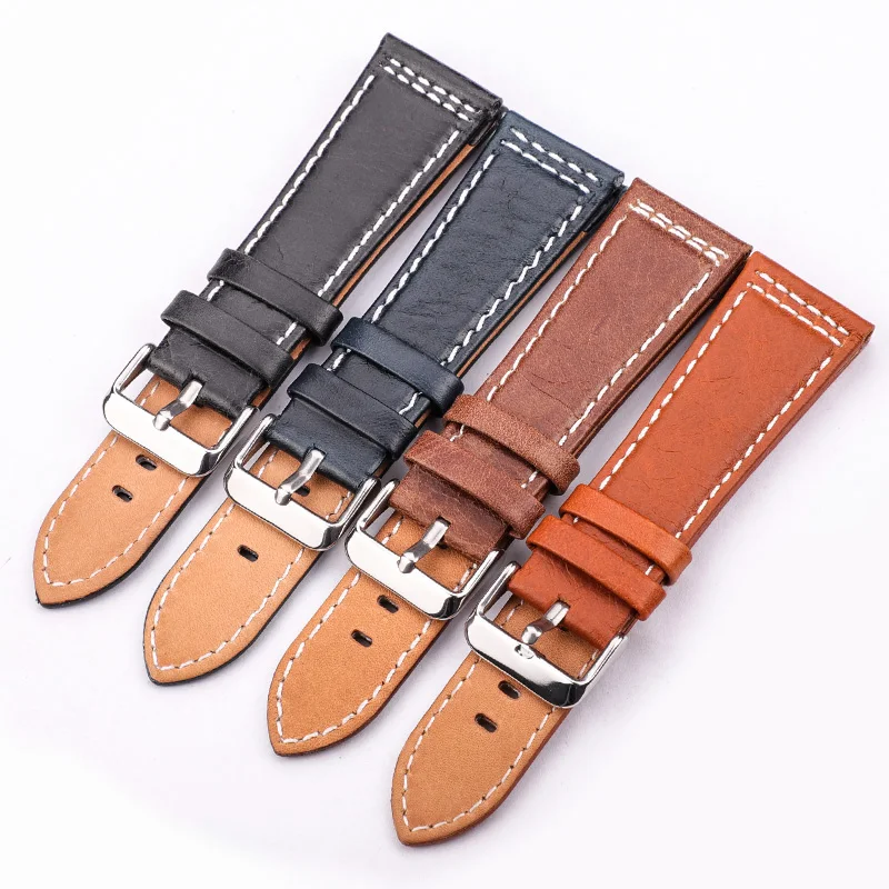 Ремешок для часов из натуральной кожи, 22 мм, 24 мм, черный, коричневый, синий, оранжевый, с пряжкой из нержавеющей стали