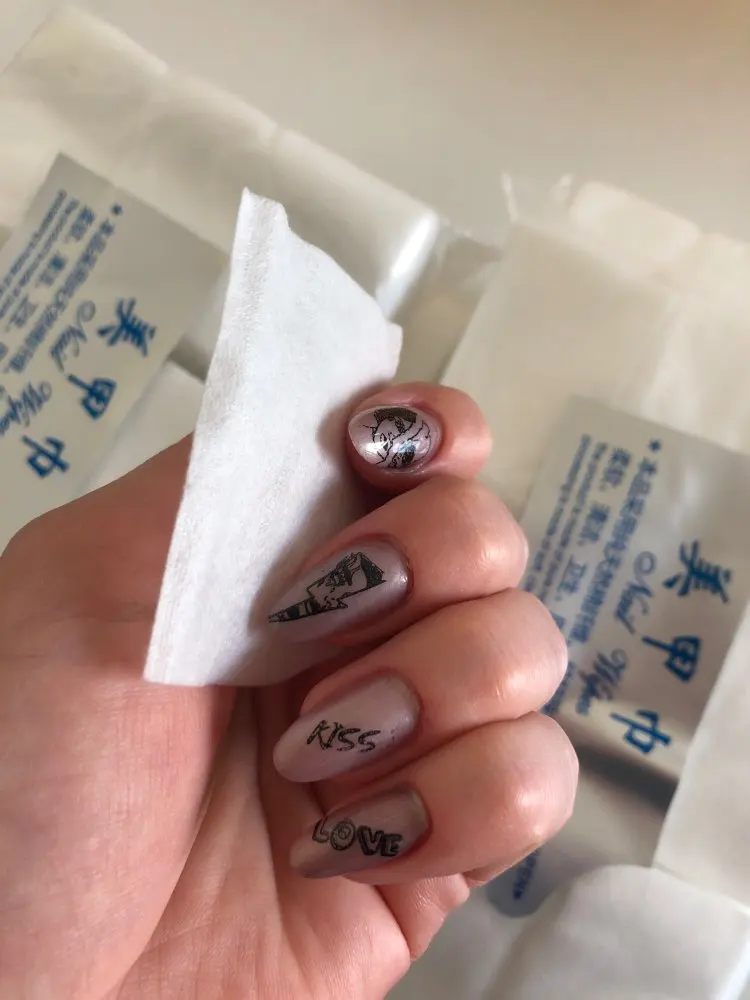 Салфетки хорошего качества. Ворс не остаётся на ногте.