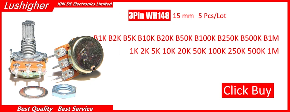 5 шт. WH148 3Pin 20 мм потенциометр B1K B2K B5K B10K B20K B50K B100...