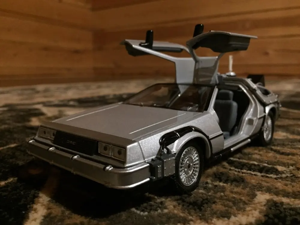 Модель автомобиля из металлического сплава в масштабе 124, часть 1, 2, 3, машина времени, модель DeLorean DMC-12, игрушка Назад в будущее, летающая версия, часть 2