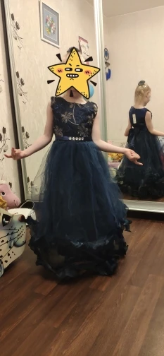 Платье полностью соответствует описанию, пышное, к самому нижнему слою юбки даже пришита небольшая сетка. Швы крепкие, хотя кончики ниток местами торчат. Расстроил пояс, стразы на нем просто приклеены на термоклей, очень неаккуратно, да и сам пояс пришит чуть выше, чем надо, вышивка под ним заминается и торчит ненужной бахромой. Но благо пояс не вшивной, так что думаю его просто заменить. Отдельное спасибо продавцу за быструю отправку, доставка приятно удивила - 10 дней с момента заказа до получения. Размер подошёл хорошо: дочери 7 лет, рост 125 см, очень худенькая. Размер 6 получился как раз в пол, заказала ещё подъюбник на кольцах, он немного приподнимет юбку, будет как раз то, что нужно. Лиф все равно чуть широковат, но не критично.