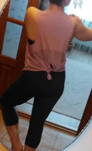 Супербыстрая доставка - 19дней от дня заказа в Киев. Очень красивая маечка. Для моих параметров ОГ-100, ОПГ-85, ОБ-105 и росте 170 выбранный размер подошел идеально. Свободно, удобно завязывается на спине. Красивое сочетание с леггинсами цвета Графит. Покупкой очень довольна, спасибо продавцу