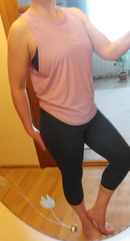 Отверстия для рук были немного большими. Это делает из-за странных затяжек вокруг подмышек и груди. Материал тоньше, чем у lulu tops, но по цене, я не могу побить его.