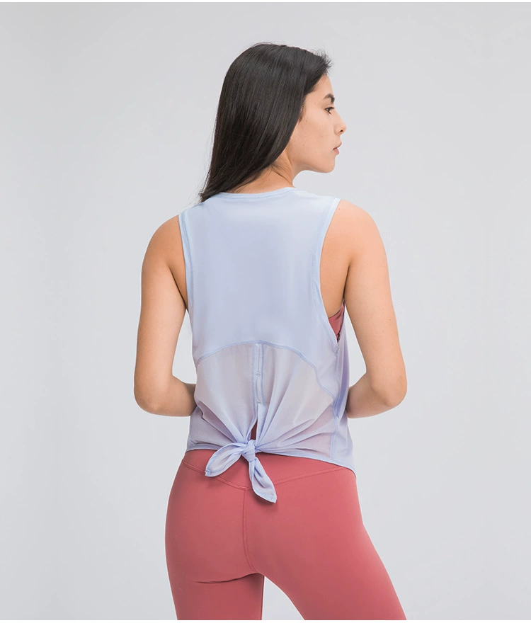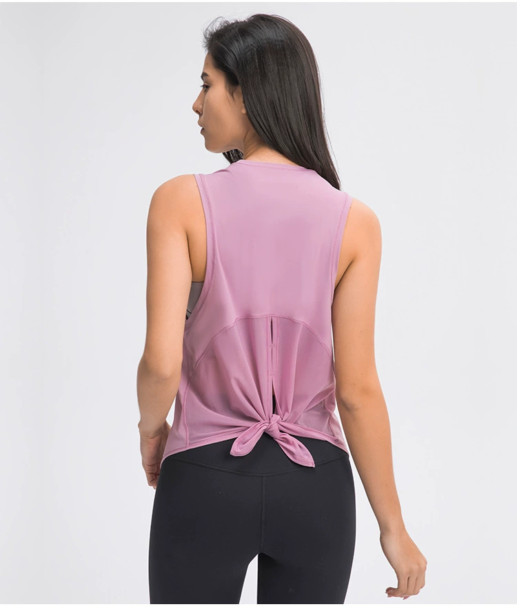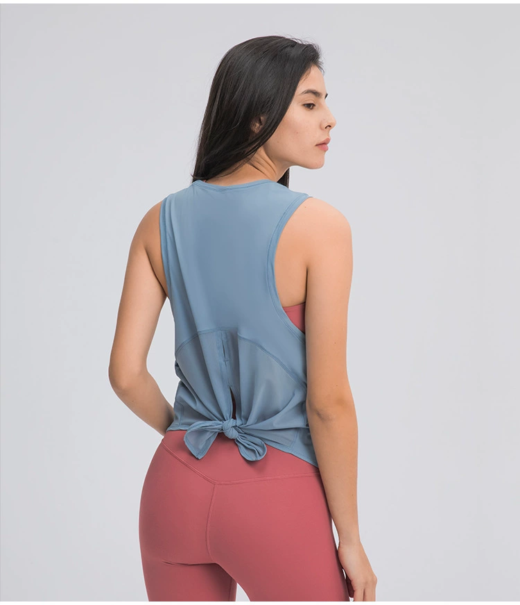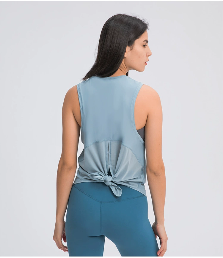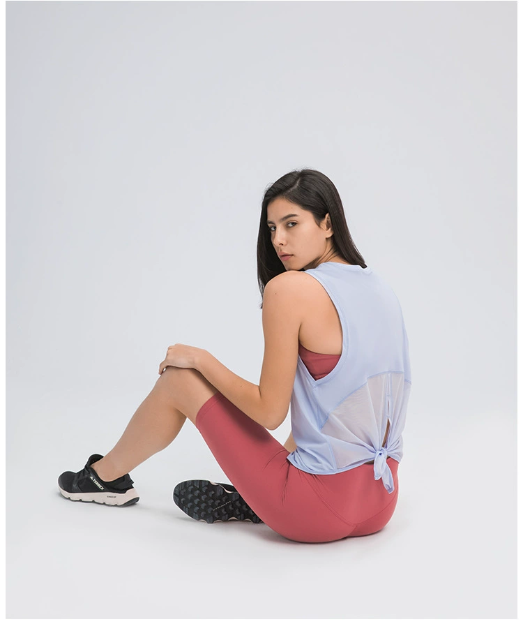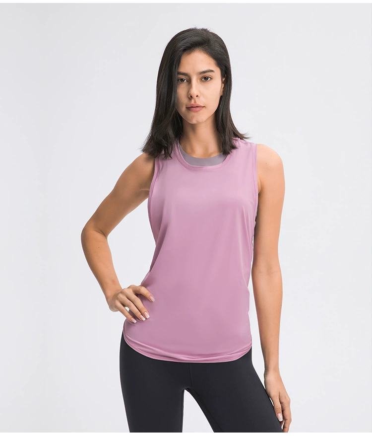 Женский спортивный жилет с сетчатым верхом, свободный однотонный жилет для йоги и фитнеса, дышащий спортивный жилет с круглым вырезом, XS-XL