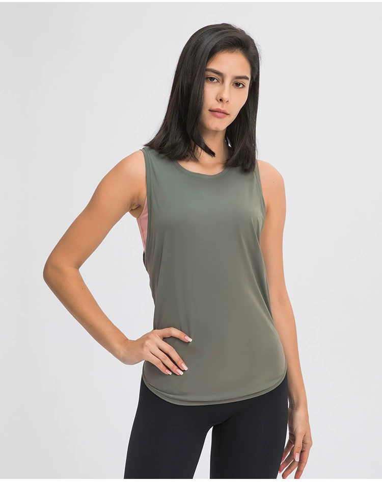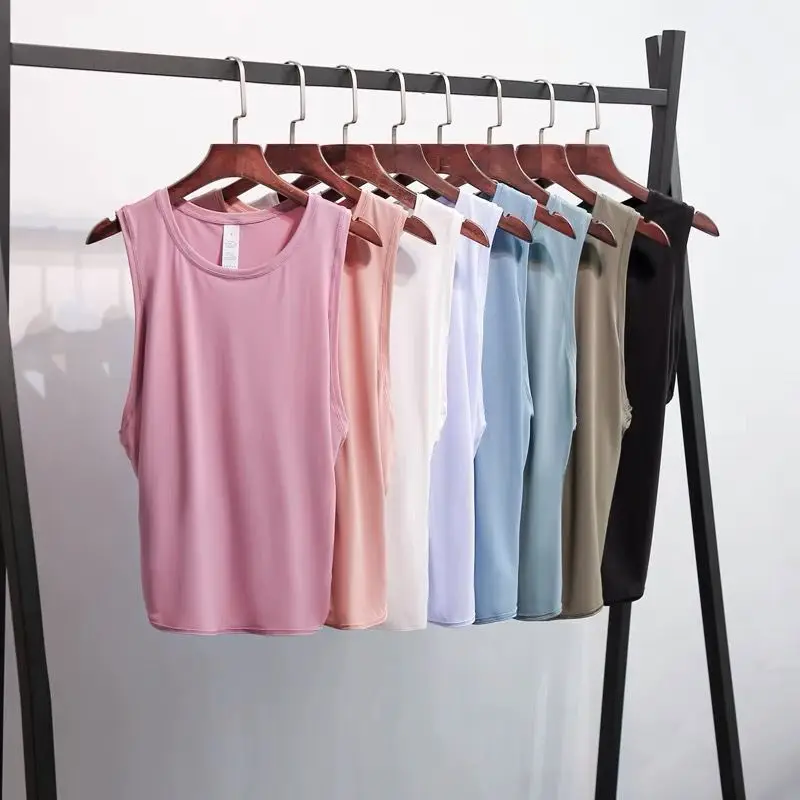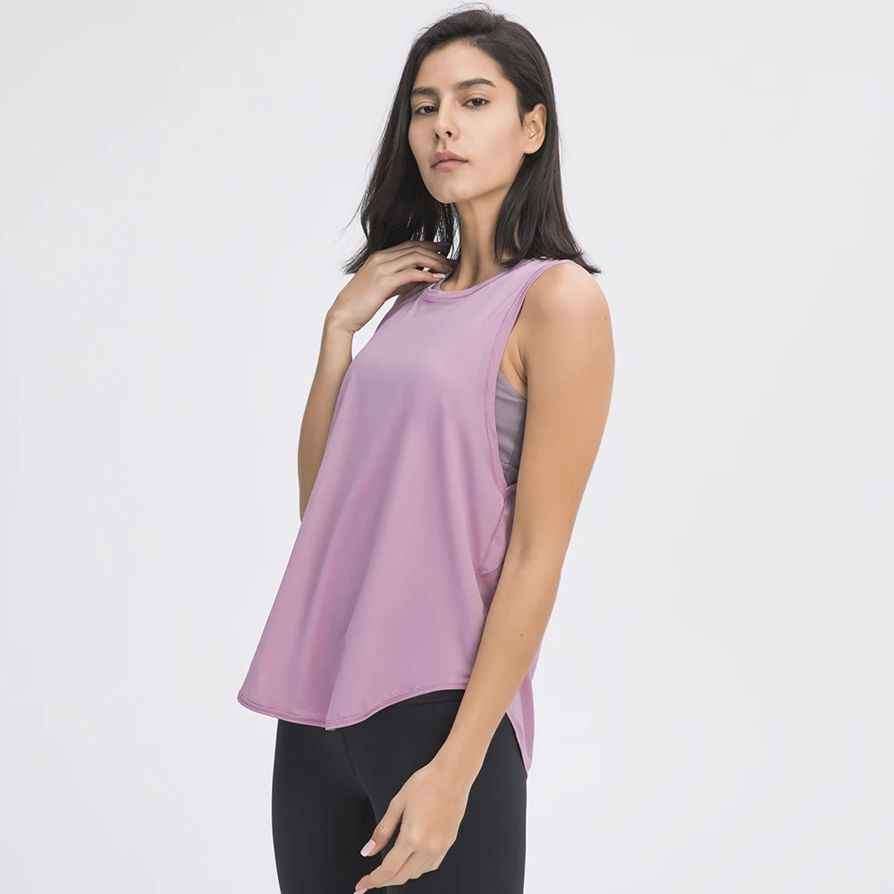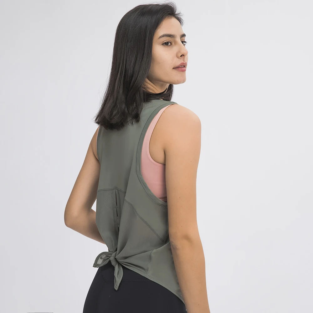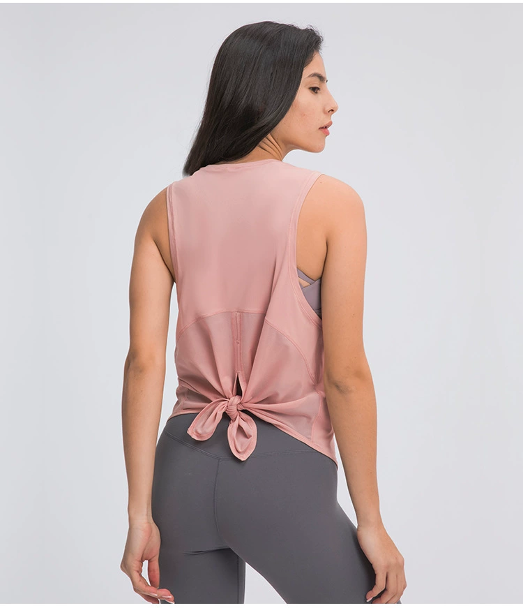 Женский спортивный жилет с сетчатым верхом, свободный однотонный жилет для йоги и фитнеса, дышащий спортивный жилет с круглым вырезом, XS-XL