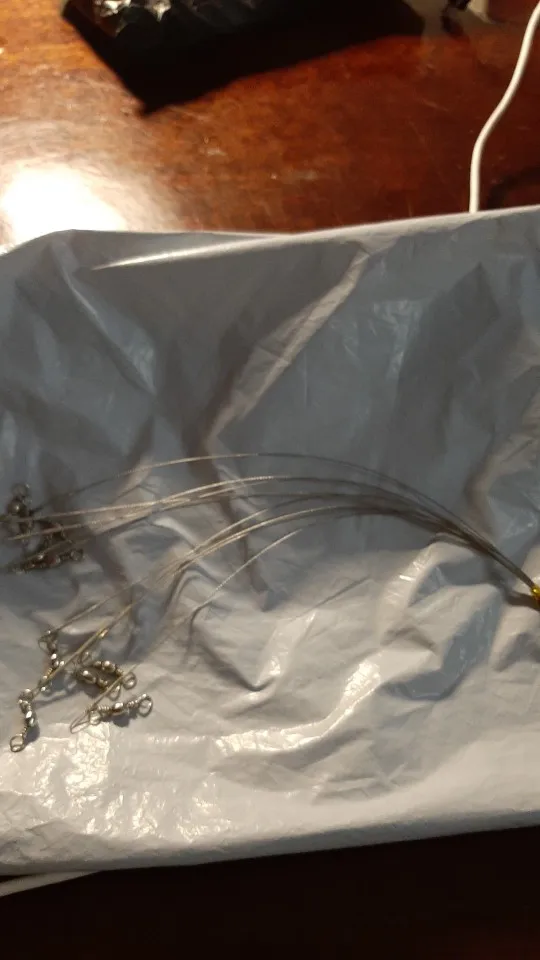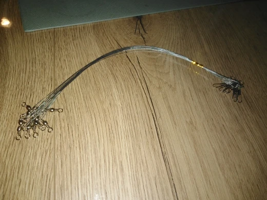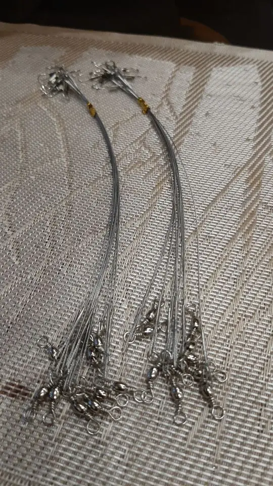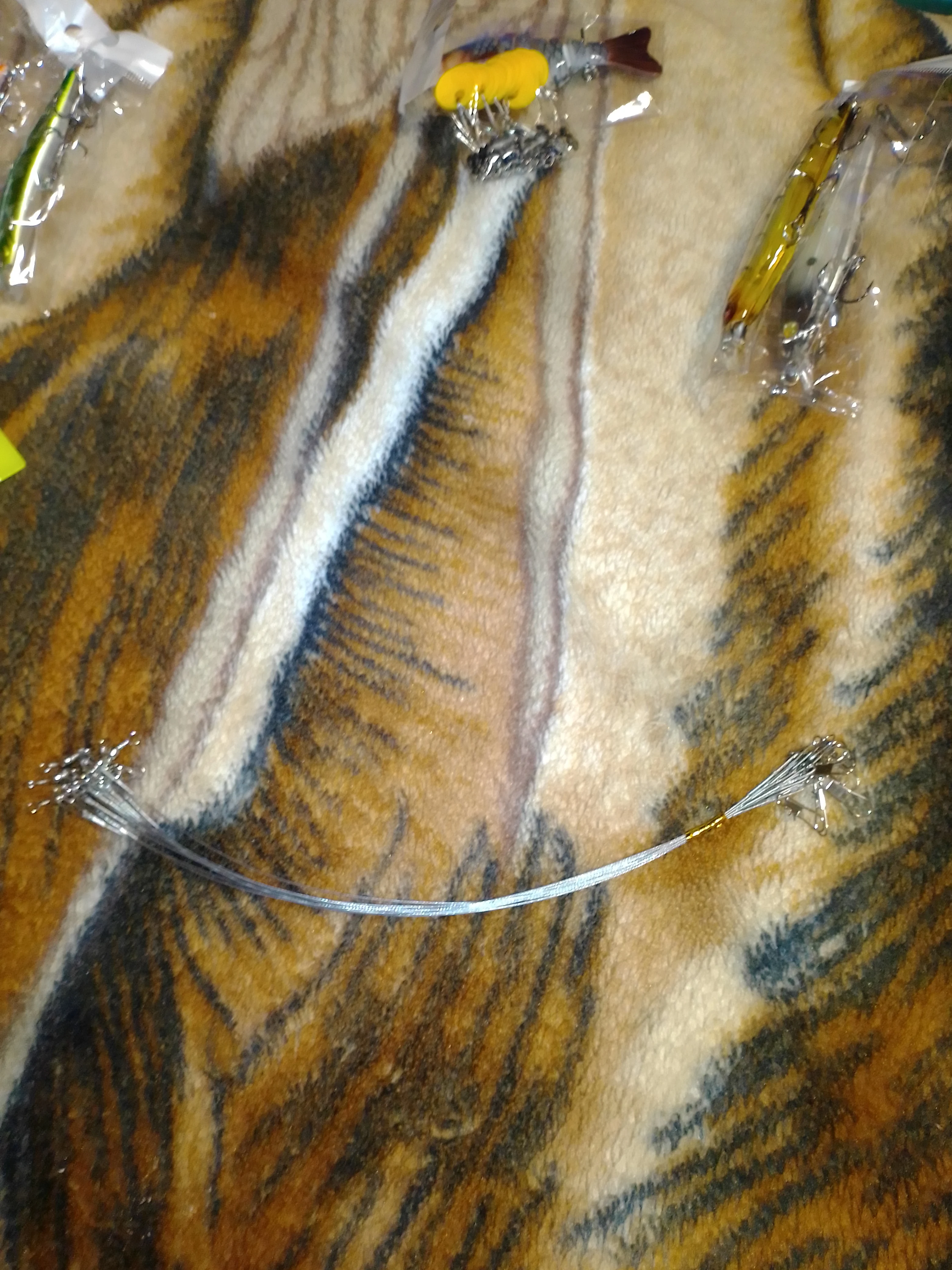 Товар заказал 28 декабря, положили в почтовый ящик 1 марта. Выглядят хорошо, лишь бы щука им была бы рада. Брал для жерлиц (20 см.). Светлого цвета ставлю постоянно. Здесь дешевле брать, чем в рыболовном. Часть жерлиц оснащаю тройниками, часть двойниками. Поэтому металлические поводки хорошо просовывать живцу под жабры, в отличие от самодельного флюра.