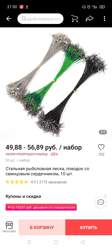 Средние по качеству поводки. Для надежной рыбалки их нужно доводить до ума, но это не критично. Срок доставки в Нижегородскую область - десять дней.