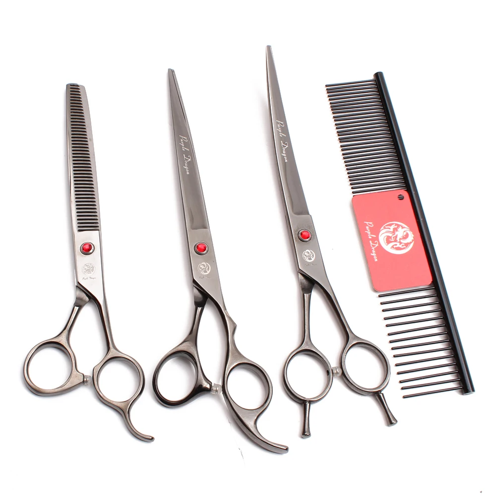 Профессиональные филировочные ножницы, из нержавеющей стали, с рисунком фиолетового дракона, чёрные, для филировки животных, 8 дюймов, Z3005