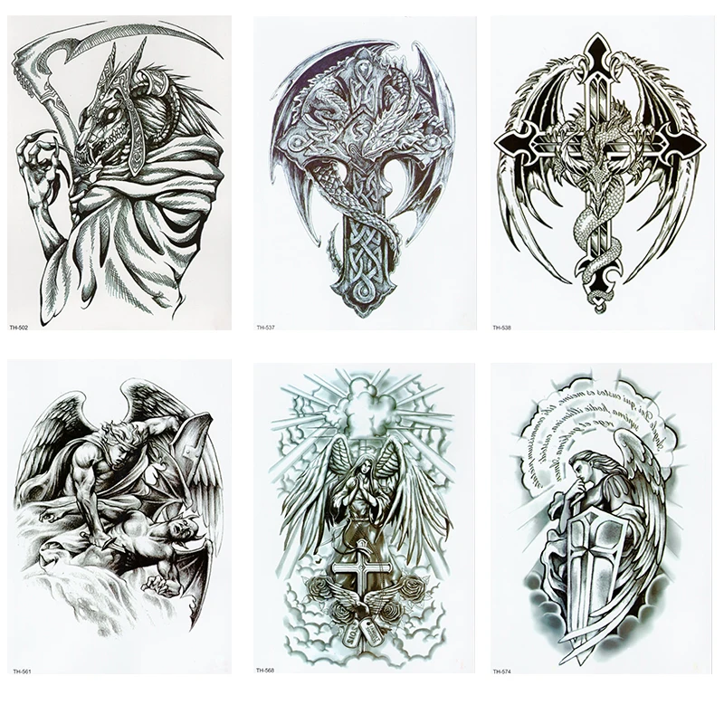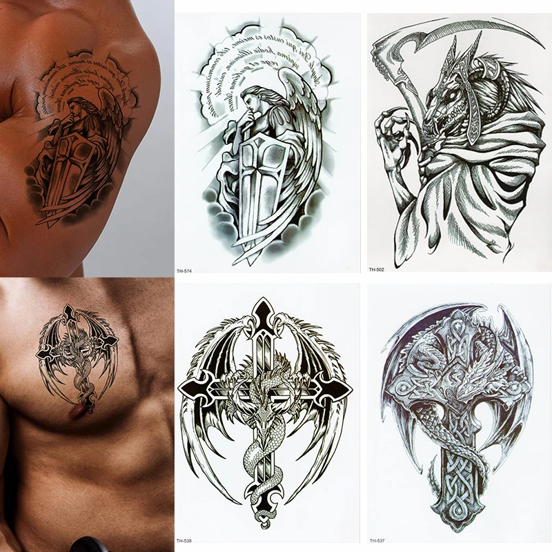 Временная татуировка с крыльями ангела воина, крест, набор из 1, распятие, боди-арт, мужские, женские