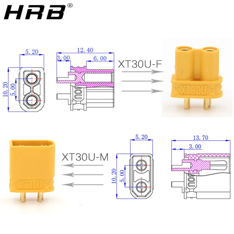 Разъемы Amass XT30 XT30U, гнездовые, гнездовые, штекерные, с разъемом для батарей RC, Lipo, контроллер, зарядное устройство, детали, аксессуары в виде бананов с медным покрытием