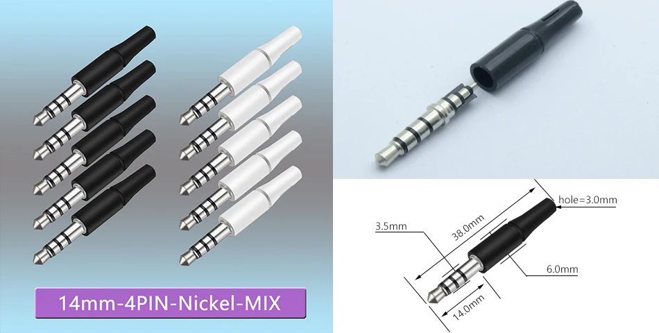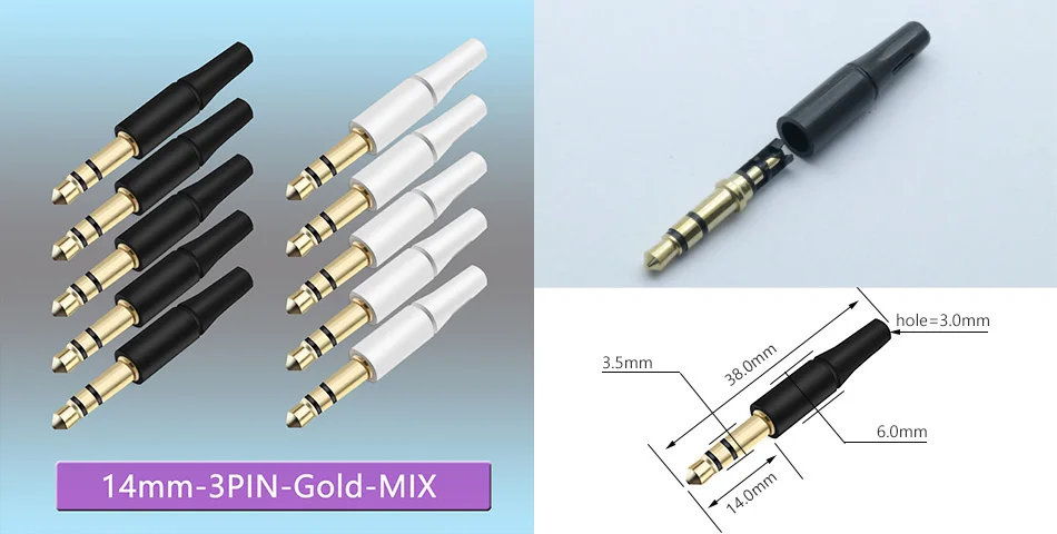 Выход 17 мм14 мм 3,5 мм стерео 3-полюсный штекер для самостоятельной сборки наушников или используется для ремонта наушников, Золотаяникелевая пластина, 10 шт.