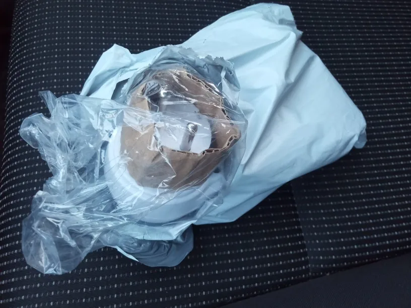 привез курьер(первый раз такое, живу в глухомани) ровно через 2 недели с момента заказа, при этом, судя по трэку, неделю был на сортировке в 300км от меня, косяк почты. продавца рекомендую, все целое, пришло в пакете.