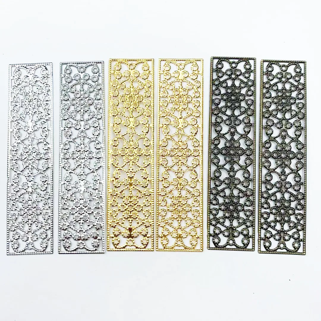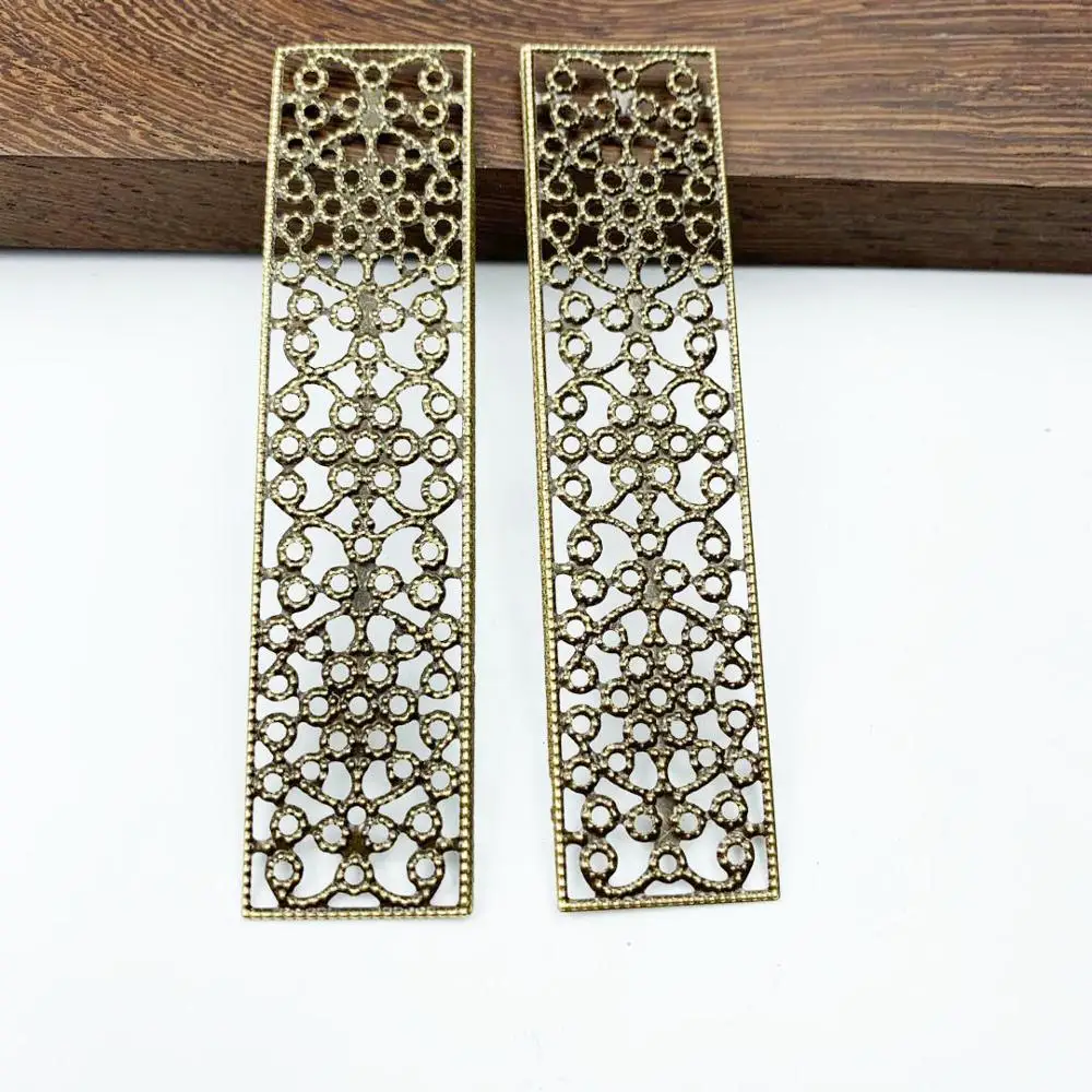 10 шт.лот 19*85 мм 2 цвета металлические прямоугольные филигранные цветы кусочки Подвески базовые настройки DIY компоненты ювелирных изделий
