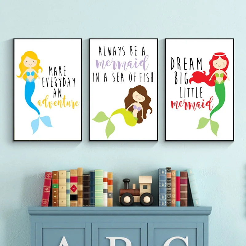 Настенная картина для детской комнаты, холщовые плакаты с рисунком русалки, картина для декора детской комнаты в скандинавском стиле