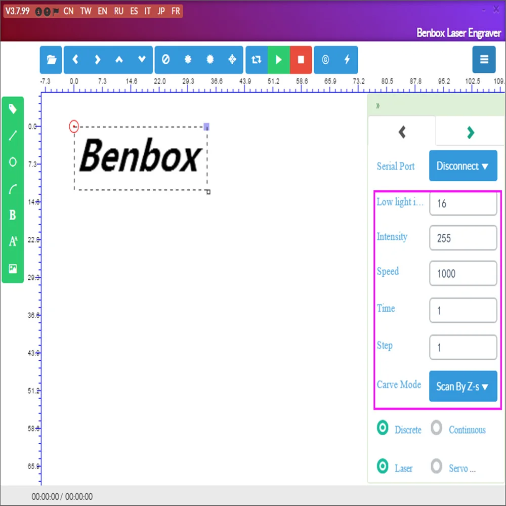 Скорость резки: 1-100 мс/пикселей