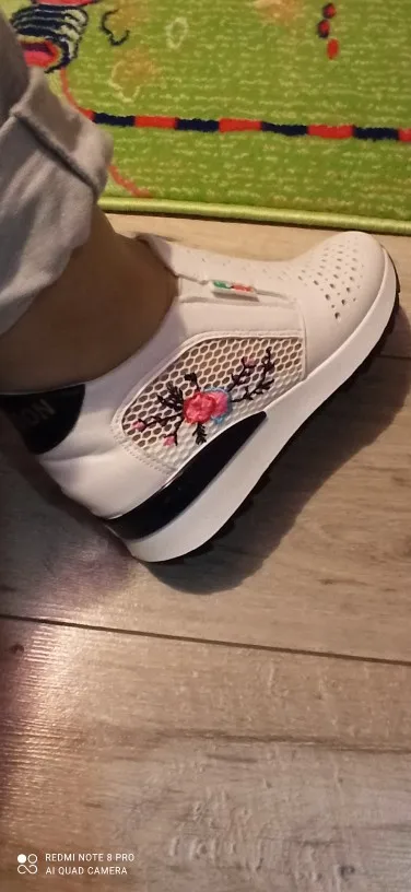 Кроссовки женские без шнуровки, повседневные туфли, лоферы, с цветами, с вырезами, белые, Размеры 35-40, лето-весна
