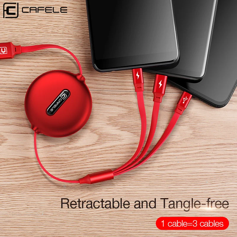 Выдвижной USB-кабель Cafele 3 в 1, кабель Micro USB Type-C для iPhone X 3A, кабель для быстрой зарядки для Huawei, Samsung, зарядное устройство для телефона