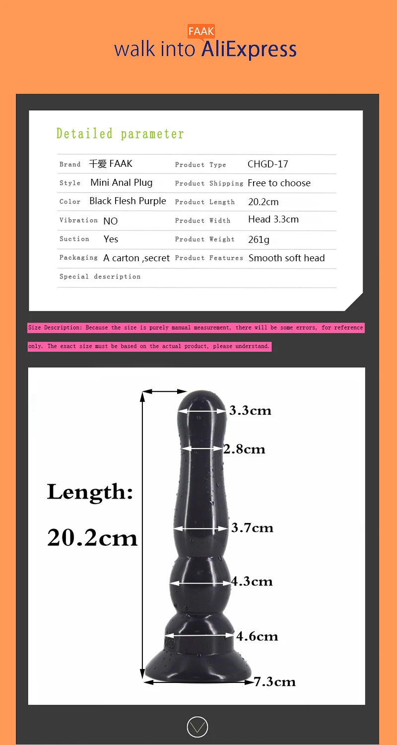 Анальная пробка FAAK, гибкая, мягкая, 20,2 см, длина мини-дилдо дюйма, с присоской, для женщин, для мастурбации, секс-игрушки