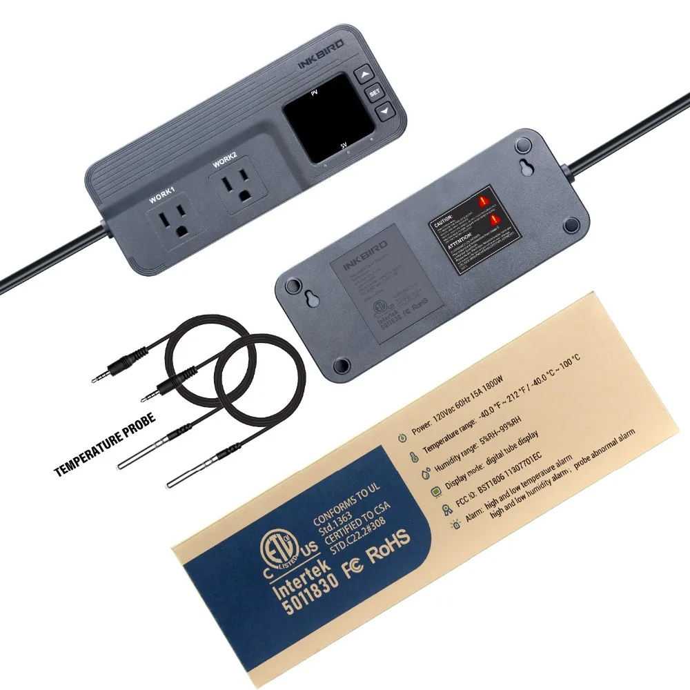 Inkbird ITC-608T Температура регулятор влажности двухступенчатый выход термостат, украшенное мозаикой из драгоценных камней, 12 периода времени на сцене и 2 Температура Сенсор