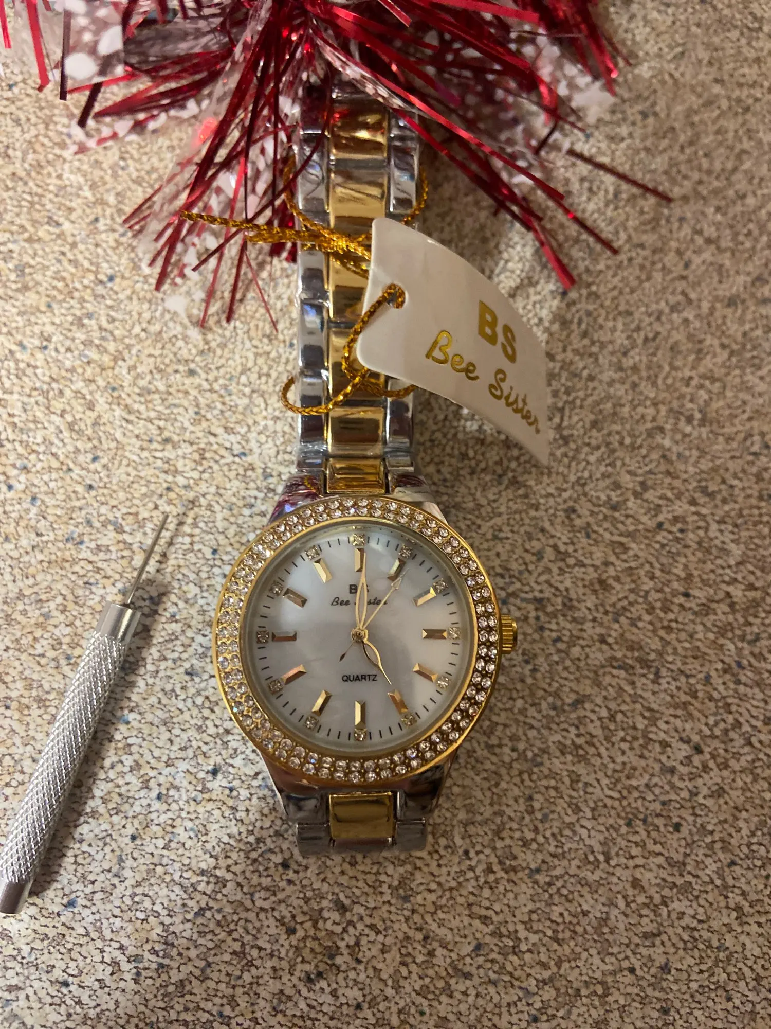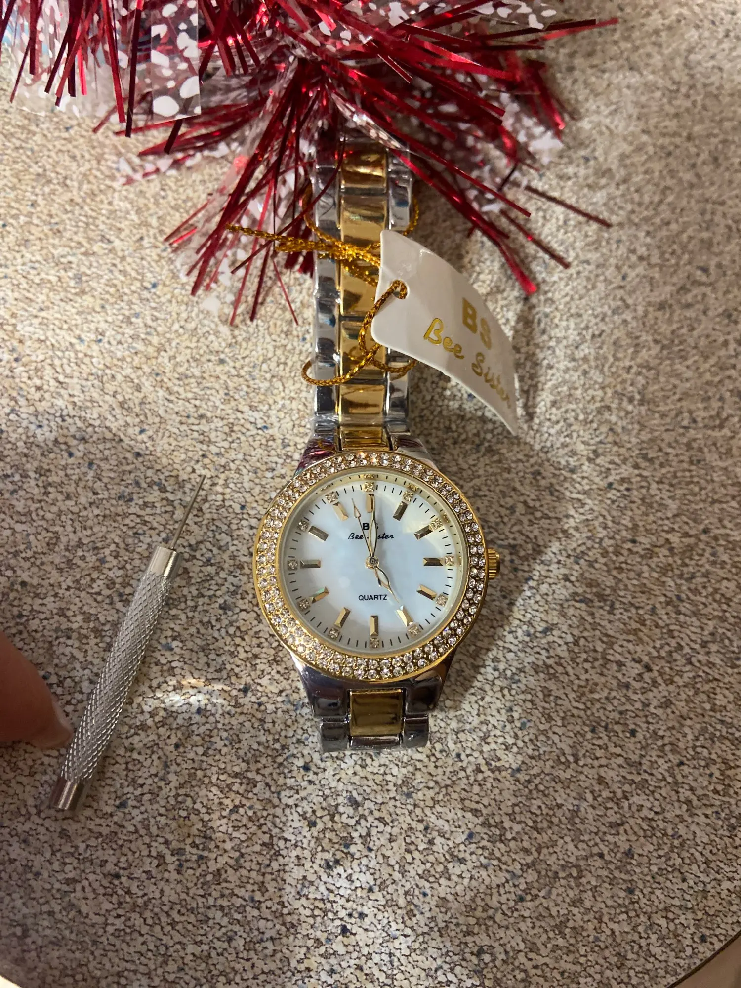 Часы красивые. Фото не передаёт всю красоту блеска камушков. Часы тяжелые, единственное-застежка не очень удобная. Вместе с часами положили прибор для удаления звеньев (но я дополнительно просила об этом продавца). Прислали за 2 недели до спб. Пока ходят точно.