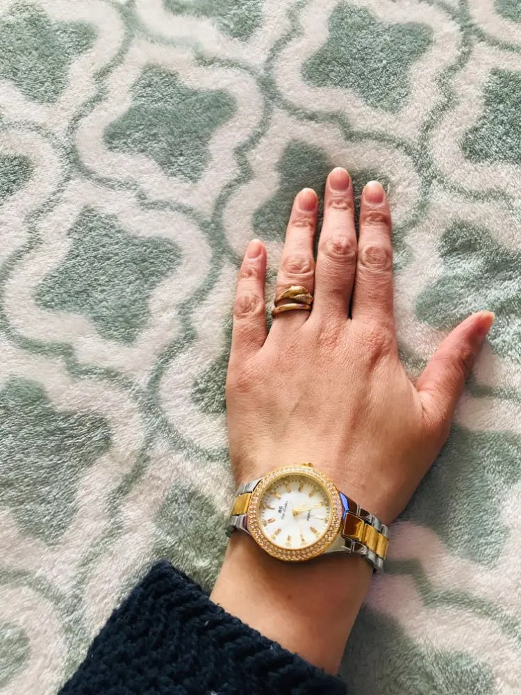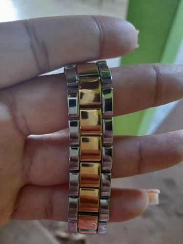 la montre est magnifique le doré est sublime c'est pas jaune pipi,en plus le vendeur à penser à me donner une petite pince pour enlever les maillons si c'est grand c'est le cas pour moi franchement je suis très satisfaite bravo vendeur recommandé et la livraison est rapide.