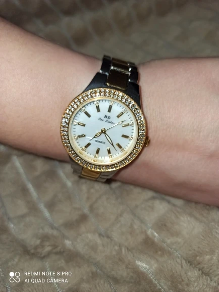 Часы красивые, все камни на месте. Немного большой браслет, но это не критично, можно убрать звенья. Но что странно, часы были уже запущены. Они ходили, никакой блокировки не было. Интересно на сколько хватит теперь батарейки???!!! А в основном все хорошо. Спасибо продавцу за мал. подарочки. На фото. Рекомендую к покупке