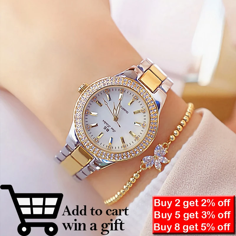 Женские наручные часы из нержавеющей стали, серебристые золотистые часы с кристаллами и бриллиантами, модель 2021, 2022