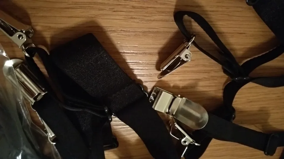 долго переживал, что не будет держать. Я задолбался уже каждый раз поправлять рубашку, после каждого раза, когда наклоняюсь. А эти штуки реально держат рубашку! зубцы лучше брать как на фото у меня - держат так, что скорей рубашка порвётся, чем эти зубы отпустят её. На фото тест с футболкой))) ноги пока что не натирает, непривычно конечно. надеюсь передавливать не будут.