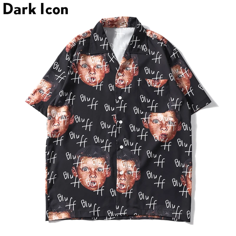 Темно-синяя рубашка для мальчиков с принтом в стиле хип-хоп, уличная Летняя мужская рубашка с короткими рукавами, уличная одежда