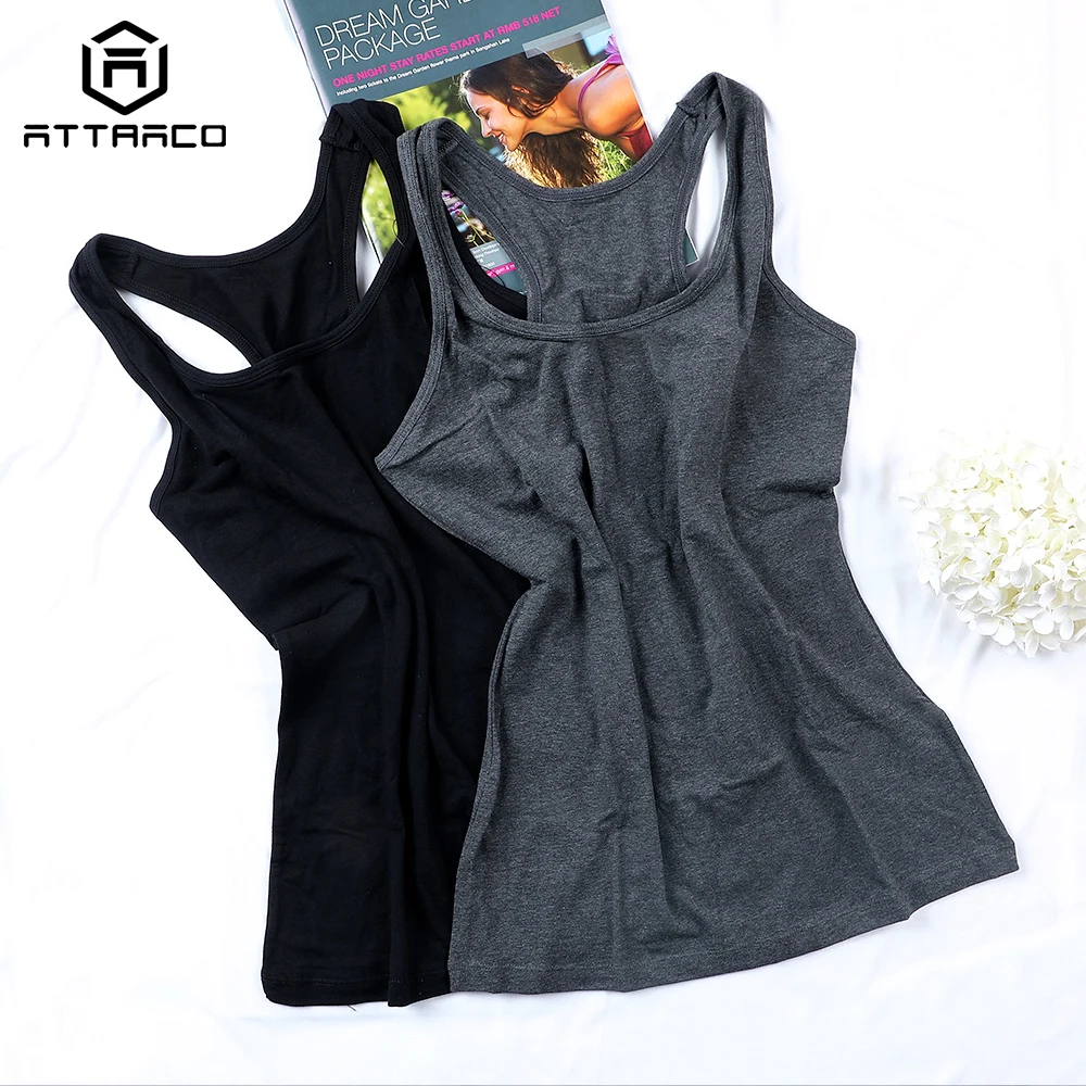 Женская хлопковая майка ATTRACO, базовая мягкая Однотонная рубашка, комплект из 2 ночных пижам, одежда для бега и фитнеса