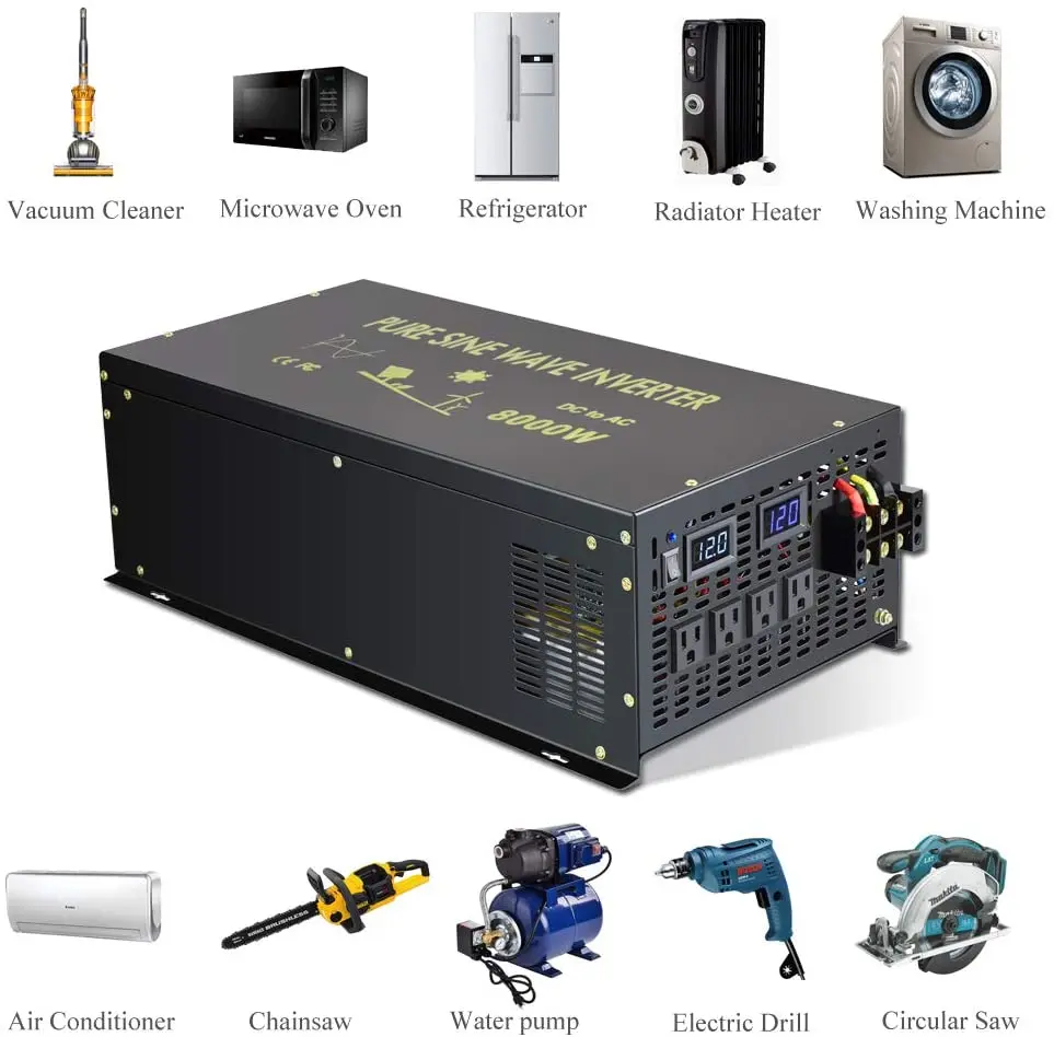 Автономный солнечный инвертор немодулированного синусоидального сигнала, 24 В, 220 В, 8000 Вт, автомобильный инвертор напряжения, преобразователь постоянного тока в переменный ток, 12 В48 В96 в до 120 В230240 В
