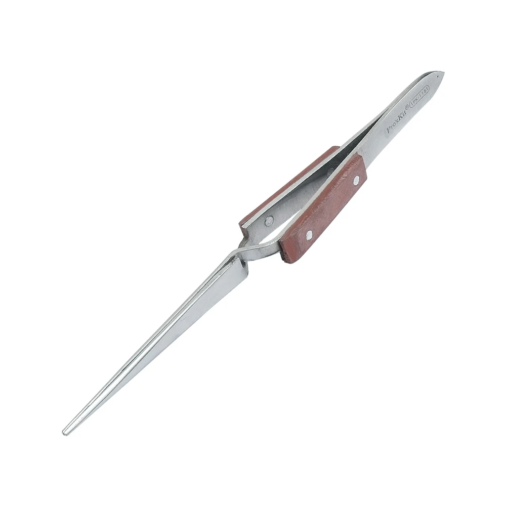 Деревянная ручка Pro'sKit, острый Изогнутый пинцет из нержавеющей стали, паяльный Пинцет обратного действия с перекрестной ножкой, высокоточные инструменты для ремонта