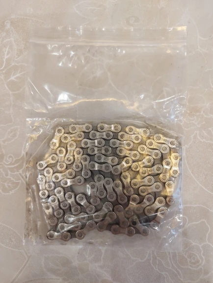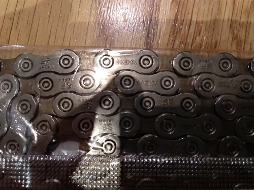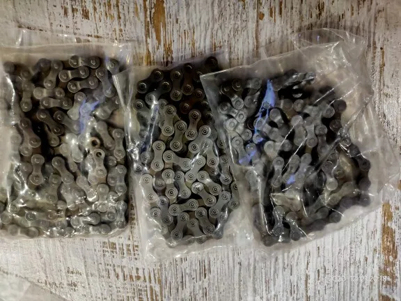 ну цепь как цепь я в них ничего не понимаю замочка в комплекте нет только пин не запрессованный и длину нужно будет укорачивать на 18 скоростей длинная оказалась, надеюсь всё получится=) пришла без оригинальной упаковки просто в пакете